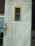 Exterior metal door with leaded window – 36 x 80 Baldwin and Schlage hardware, kick plate $400